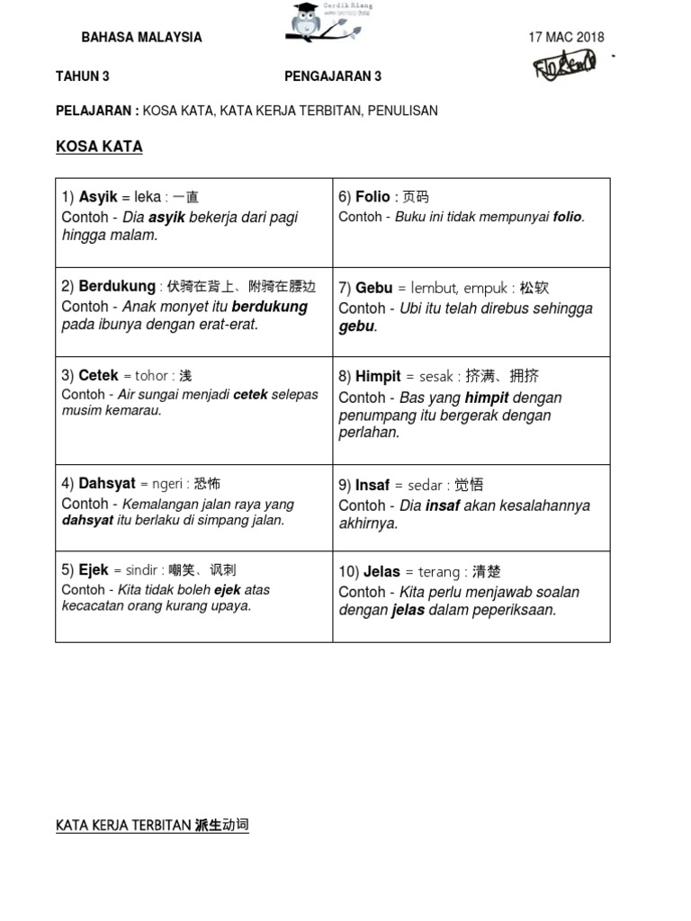 Kosa Kata Mingguan Dangkal Sri Ucsi Secondary School Facebook